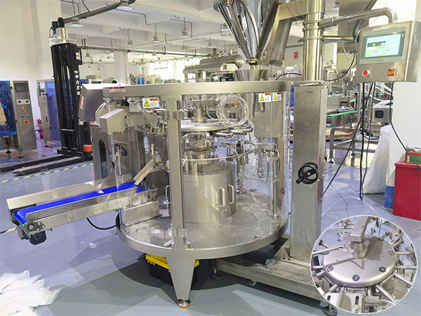給袋式粉(fěn)劑包裝(zhuāng)機的自動化(huà)工作(zuò)方式能夠經過一鍵式操作,完成高效、穩定、標準的包裝條件。全自動奶粉末包裝機械的操作方法全部都是依賴於控製係統,整個工作過程是從工作人員的參數設定,啟動機器,將開始從上(shàng)料開始(shǐ),奶茶(chá)粉末會隨著螺杆的轉動,在封閉的狀態送至攪拌料想內,經過螺旋轉動使(shǐ)其物料攪拌的更加均勻,此時的機械手精準抓取一個預(yù)製袋,通過(guò)吸風(fēng)裝置將所需包裝袋(dài)口撐開,緊接著,螺杆定量器(qì)會(huì)按照設定的包(bāo)裝參(cān)數,對物料進行統一充填運動,完成充填任務後,全自動奶茶(chá)粉末(mò)包裝機械由旋轉的方(fāng)式給袋(dài)進行熱風,壓合,確保(bǎo)包裝(zhuāng)後產品的密封效果,直至成品輸出。在整個生產過程(chéng)中,給袋式粉劑包裝機全部都是由PLC可編程控(kòng)製器的優化操作完成。
