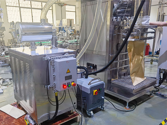 在化工、建(jiàn)材、冶金、食品、醫藥(yào)等工業領域當中,所需包(bāo)裝的大袋物料不在少數,25kg粉(fěn)末包裝(zhuāng)機以自動化、安全化、精準化的包裝方式展開了一係列的生產內容(róng),大型粉劑防爆包裝設備,通過多台自動化機械設備的相互配(pèi)合,能夠對10公斤、15公斤、20公斤、25公斤等大袋物料提供高效、安全、智(zhì)能的包裝(zhuāng)條件。