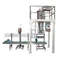 全自動五穀(gǔ)雜糧包裝機由自(zì)動上料機+四鬥顆粒(lì)定量稱+單工位給袋式包裝機組成