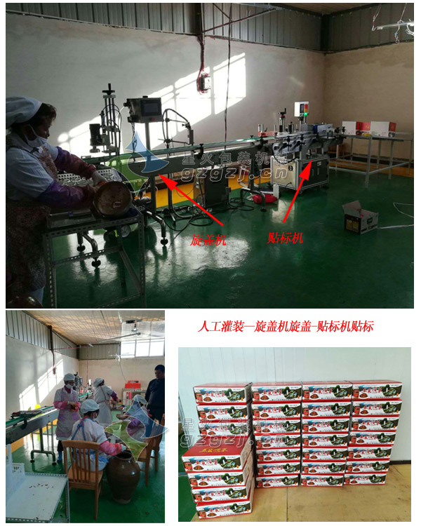 賓川匯民是(shì)一家專業生產韭菜醬醃菜的企業,為了提高(gāo)產量,經過了解選購(gòu)了我們的真空旋蓋機和自動貼標機,由(yóu)人工灌裝(zhuāng)醃菜後(hòu),交由旋蓋機(jī)進行真空旋蓋再貼標,提高了一半的生產效率並節省了人力開支,旋蓋機、貼標機使用一段時間之後,該企(qǐ)業負責(zé)任(rèn)了解全自動化生產的優勢;打電話又谘詢訂購了醬料全自動灌裝機,組成了全自動韭菜醬醃菜包裝生產線;可以自動完(wán)成整個包(bāo)裝流程,既(jì)能節省了企(qǐ)業的人工成本,又可以減少食(shí)品在包裝過程中遭受汙染的可(kě)能,提高食品包裝的安全性和衛生性