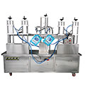 2.灌(guàn)液分二次灌裝(裝量可調)避免液體泡沫溢出瓶口。並裝有缺瓶止灌裝置,以(yǐ)免料液損耗,汙染機器及影響機器(qì)的正常運行。