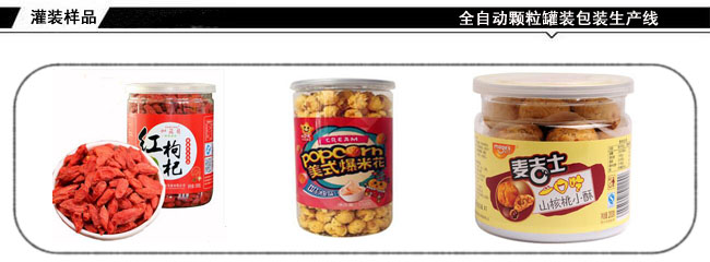 全自(zì)動顆(kē)粒罐裝包裝生產線-堅果灌(guàn)裝封口貼標生產線根(gēn)據不同(tóng)用戶的瓶裝,聽裝,桶裝,標準瓶(píng),異形瓶及實際產品特性和用戶要求實(shí)現(xiàn)自動化;該設備能夠實現人工上瓶、備料後,自(zì)動理瓶、稱重、灌裝、旋蓋、封口、貼標、收罐等全過程的(de)自動運行。減少勞動(dòng)力,節約成品,實現無人化包(bāo)裝生產