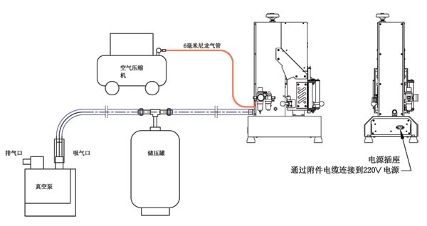 壓縮空氣:泵流量要求0.11 立(lì)方每分鍾以上(shàng),0.7 兆(zhào)帕(7 公(gōng)斤(jīn)每平方厘米);