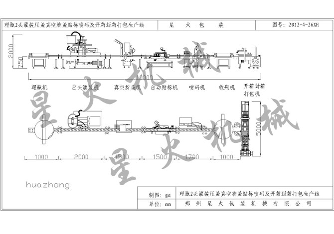 >> 理(lǐ)瓶(píng)2頭灌裝真空旋蓋(gài)貼標噴碼收(shōu)瓶及開(kāi)箱封箱打包生產線