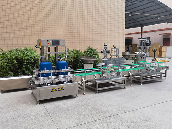 針對25L糖水、冰糖水、果葡糖漿糖(táng)水、調味糖水等具備一定粘度、易起泡沫、需嚴格(gé)控量的特性的物(wù)料,全自(zì)動灌裝機械能夠快速鎖定灌裝精度的控製(zhì),保障物料(liào)的安全輸出效果,25L糖水雙頭稱重(chóng)灌裝機雙工位高效灌裝,可提(tí)升大桶(tǒng)物料灌裝的效率,確保灌裝產品的統一性、標準(zhǔn)性等生產條件。